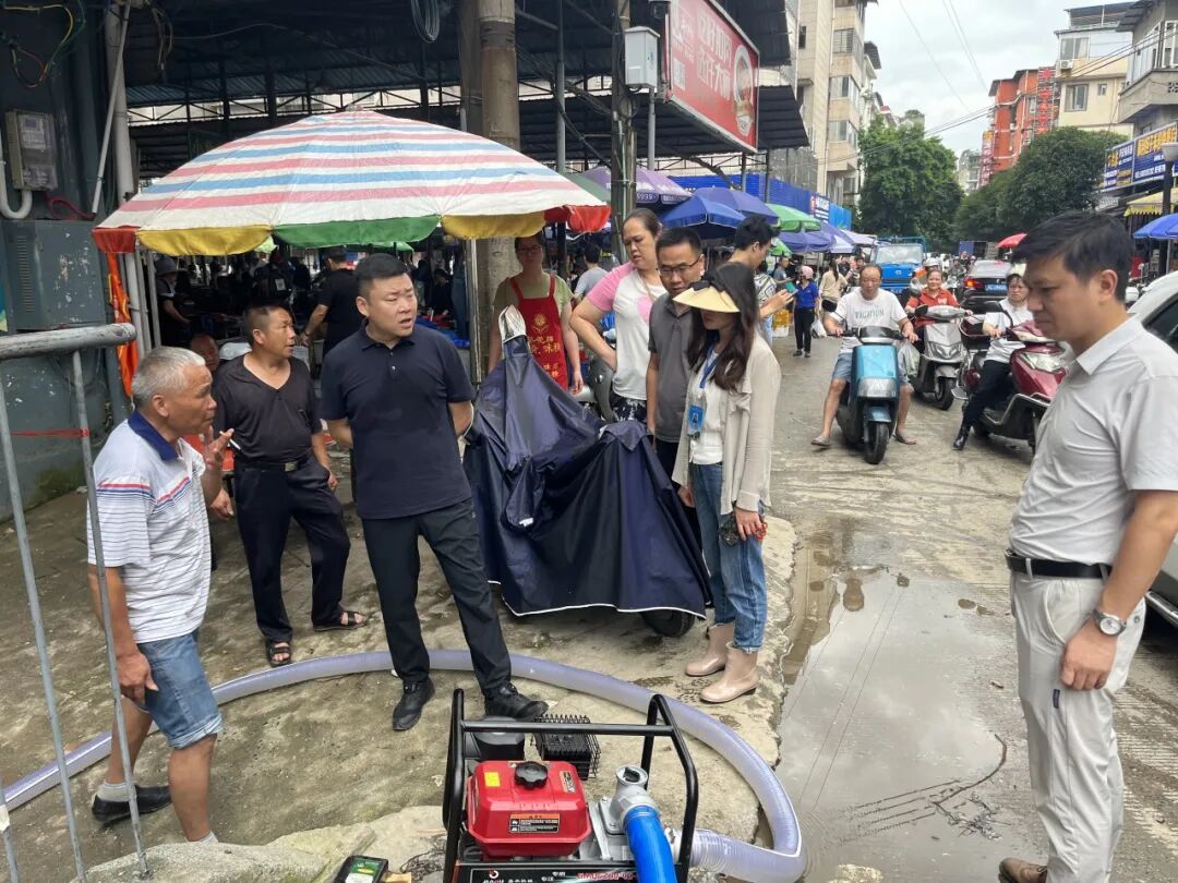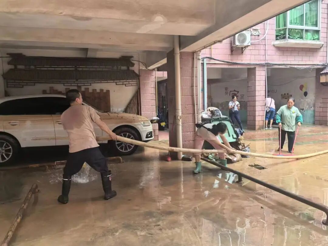 随着洪水逐渐消退,南门街道部分小区、道路及市场内出现淤泥堆积、垃圾散落、积水难排等情况。6月21日,为帮助群众尽快恢复正常生活秩序,南门街道党工委班子全体成员、街道综合行政执法队、各社区党员干部坚决贯彻落实区委区政府有关防汛救灾工作部署要求,齐心协力、压实责任,联合包联单位、志愿者等全力开展灾后恢复生产和重建工作,清淤清障、积水疏通、安全消杀等工作有序开展。