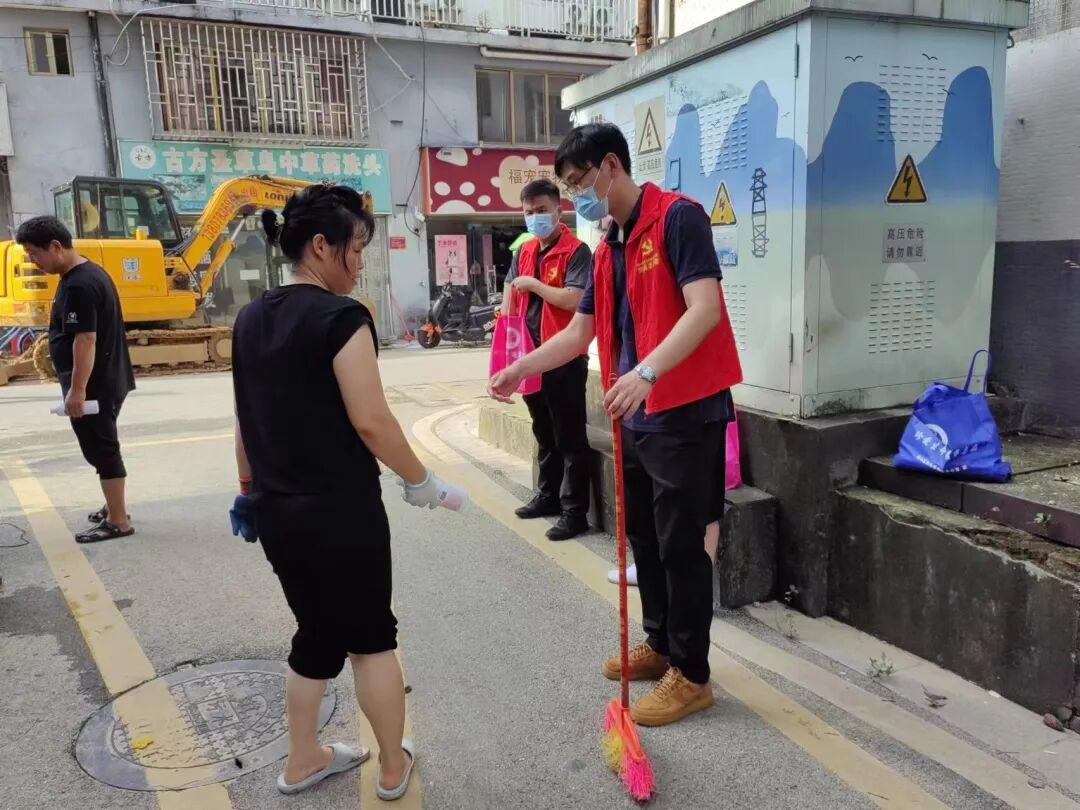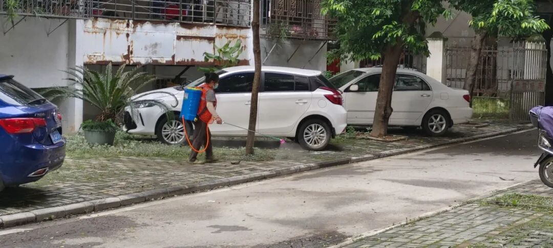 6月21日,金竹社区联合包联单位市委组织部党员志愿者到小区开展垃圾清扫工作,并向居民发放消毒液,告知其做好消杀工作