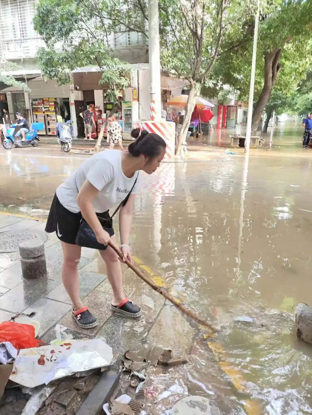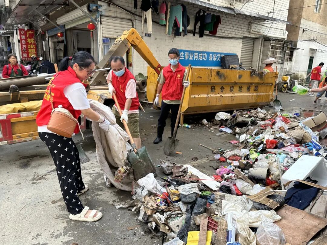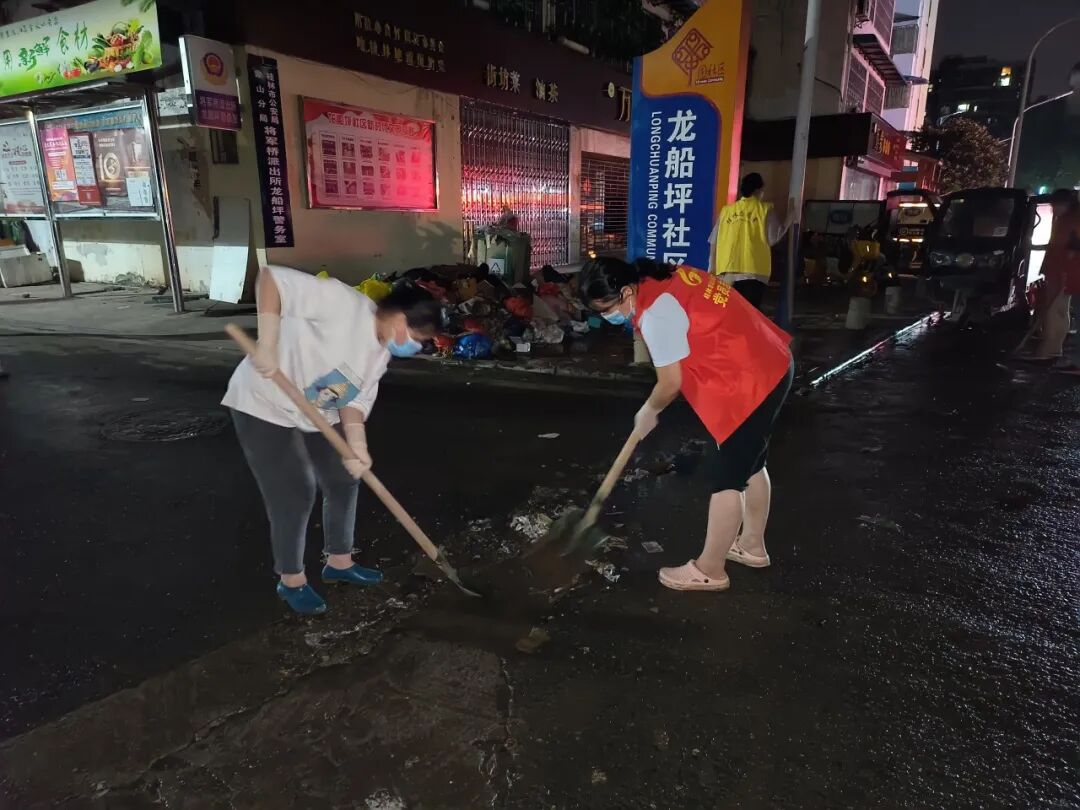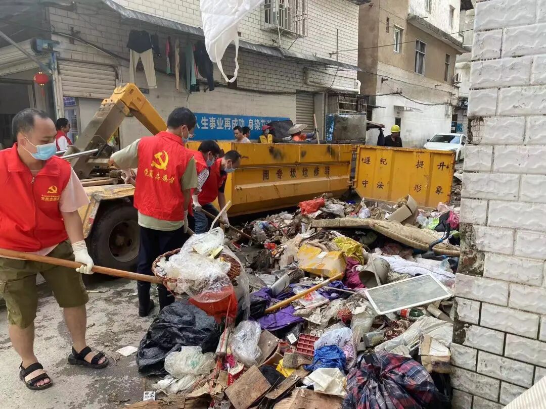 洪水退去,大街小巷大量泥沙淤积、垃圾散落,为帮助受灾群众尽快恢复正常生产生活秩序,各社区积极联合环卫工人、包联单位、党员志愿者开展清淤、消杀、排涝等灾后修复工作,及时冲洗路面、清运垃圾、排涝抢险、安全消杀,做好洪涝灾后的除害防病工作。