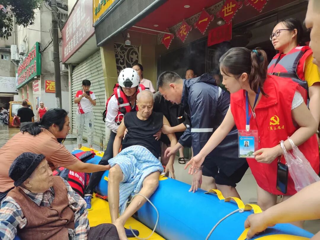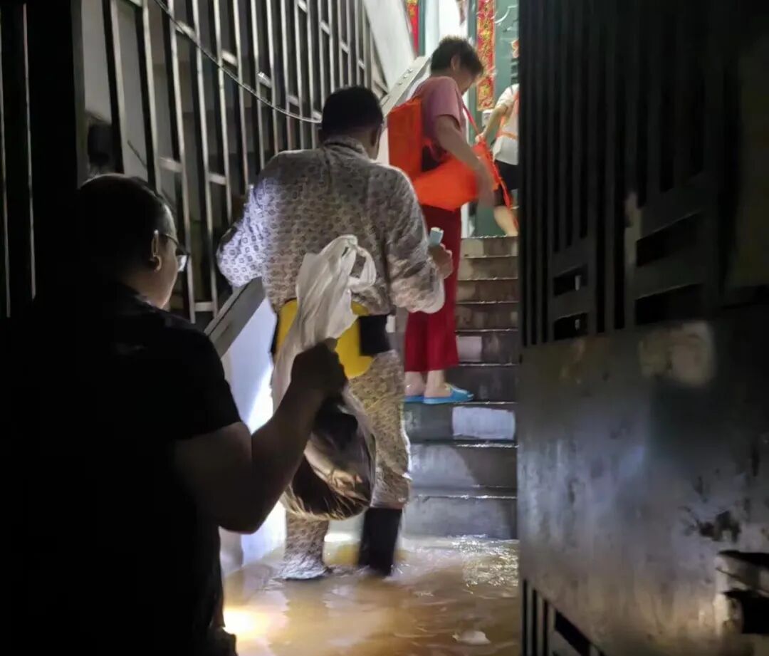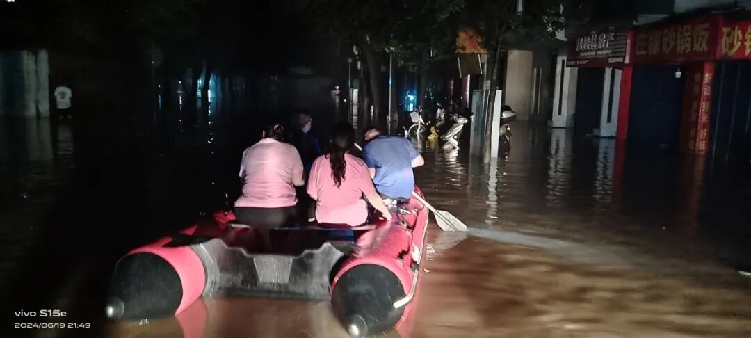 6月19日,受连续性强降水影响,南门街道辖区宁远河段、南溪河段、桃花江段等水位上涨,街道全域出现内涝积水,主干道路交通受阻,防汛救灾形势刻不容缓。社区党员干部闻“汛”而动、闻令而行,逐栋逐户排查风险,积极协助社区商户、辖区居民转移物资财产,密切关注重点人群,及时将被困群众转移至安全地带,与时间、洪水赛跑,全力维护群众生命财产安全。