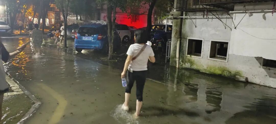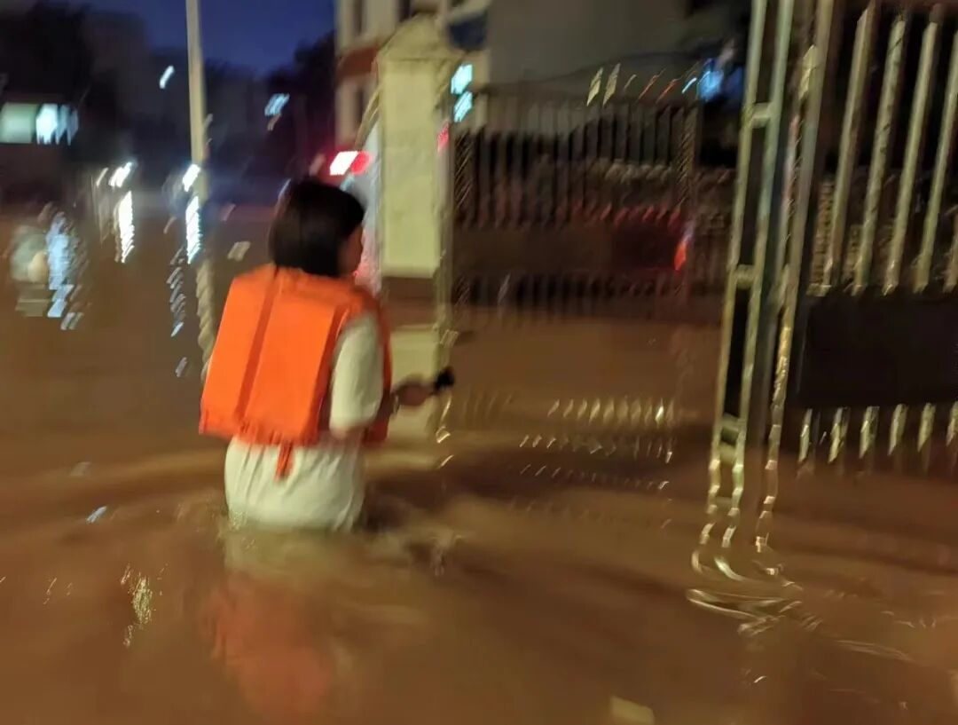 由于江水倒灌,尚智社区辖区上海路枫丹丽苑小区等地下车库发生内涝,为及时恢复小区居民用电,尚智社区书记赵艳琴及社区党员干部实地了解内涝情况,及时上报需求,凌晨仍坚守岗位与救援队进行对接,切实关注居民需求,及时排涝、恢复供电。