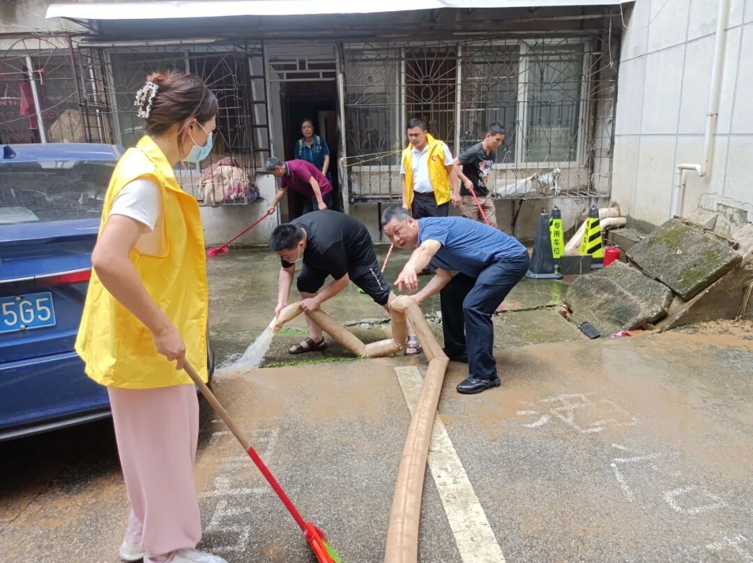 汛情发生以来,南门街道各社区党员干部主动作为、不舍昼夜,始终坚守在防汛救灾一线,积极开展抢险救灾和灾后重建工作。在隐患排查、转移群众、运送物资、抢险排涝、清淤消杀等急难险重任务中,充分发挥基层党组织的战斗堡垒作用和党员先锋模范作用,切实为民服务,筑牢安全防线。