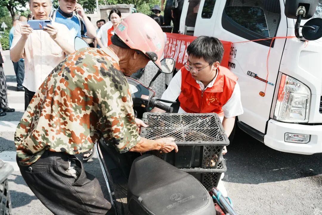 7月27日上午,象山区二塘乡将一批优质鸡苗免费发放给困难残疾人。活动现场,残联工作人员与志愿者一同搬运鸡苗,帮助残疾人把鸡苗装车,让他们切身感受到来自党和政府的温暖与关怀。