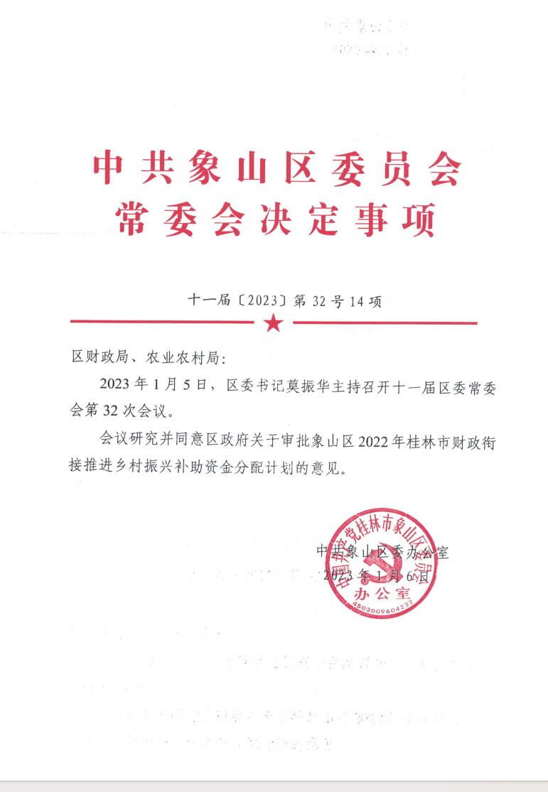 象山区乡村振兴项目补助资金分配计划的批复