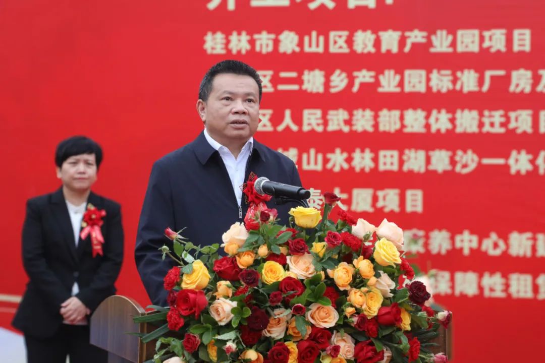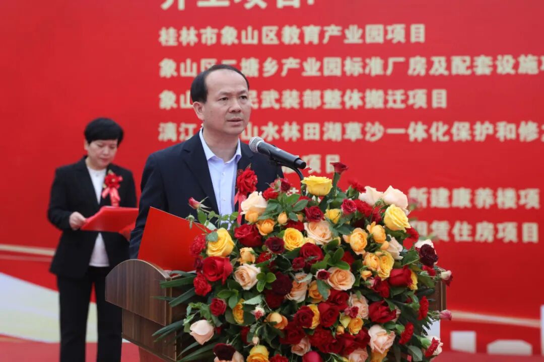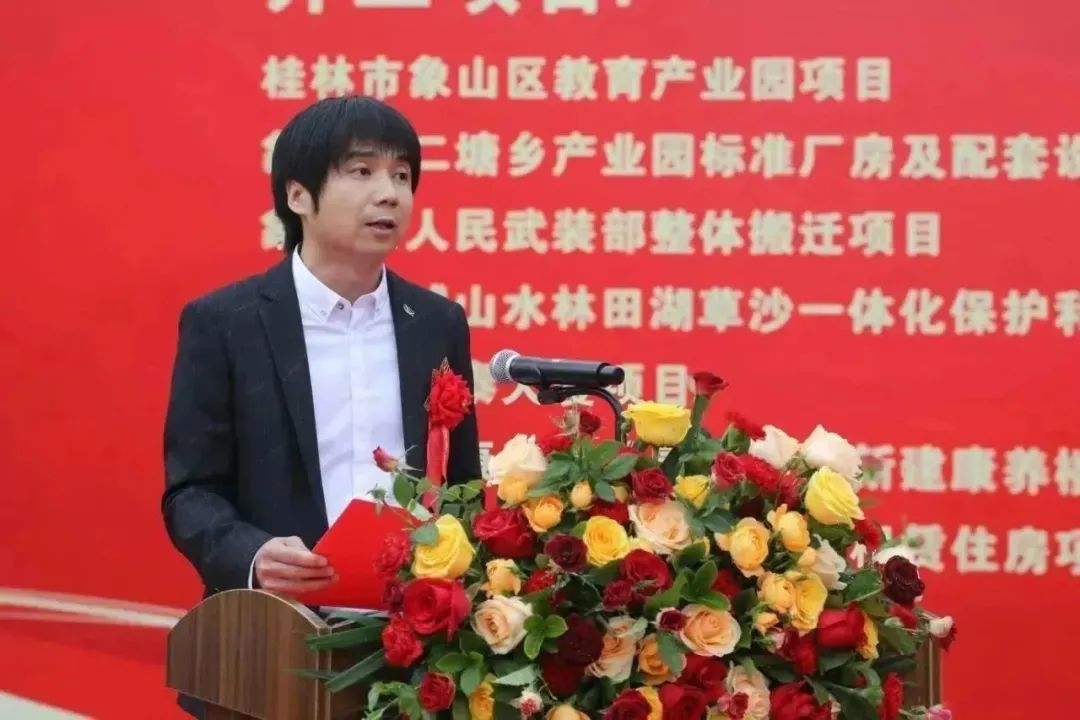 莫浩作为开工项目业主代表在仪式上致辞,对桂林市象山区教育产业园项目情况及未来发展进行介绍。