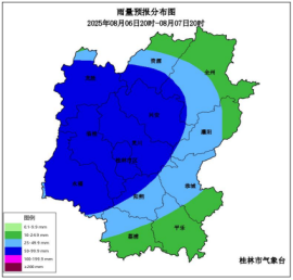 今天晚上到7日白天,西部阴天有大雨到暴雨,局部大暴雨,个别特大暴雨;东部小到中雨、局部大雨到暴雨,并可能伴有短时雷暴大风等强对流天气。最有可能出现暴雨以上降雨的县(市、区)有:龙胜、兴安、灵川、临桂、永福各乡镇及桂林城区,全州(安和、凤凰、蕉江、绍水、咸水),资源(车田、河口、两水、中峰、资源镇),阳朔(白沙、金宝、葡萄、兴坪、杨堤)。