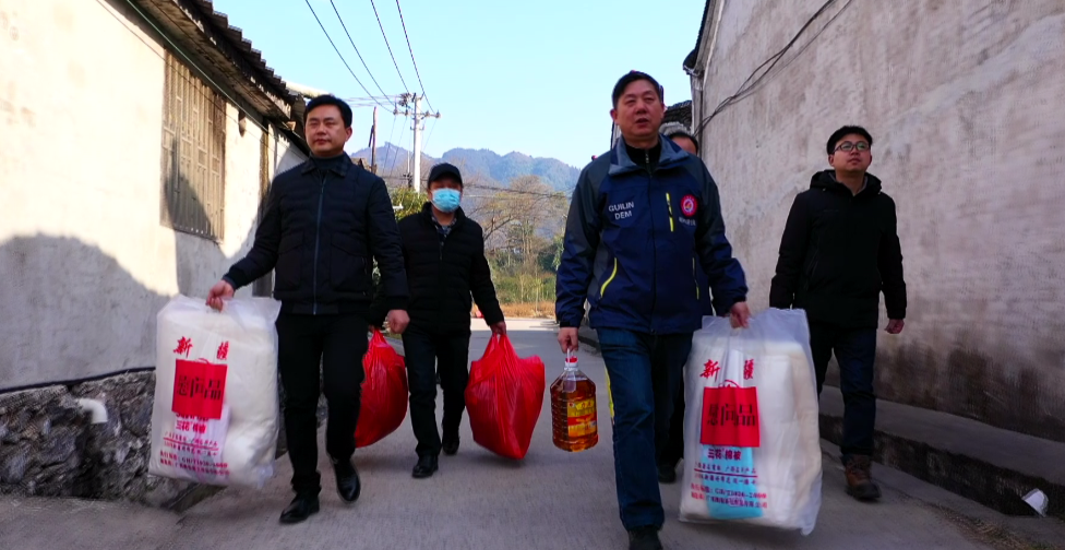 桂林市应急局到临桂区中庸镇王家山村发放冬春救灾物资