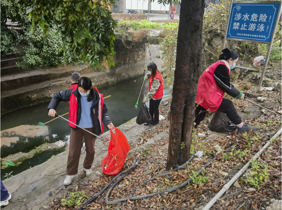 各村(社区)工作人员积极清理漓江支流及周边垃圾