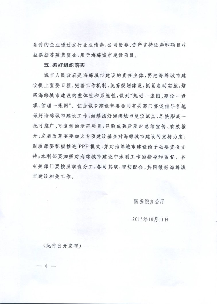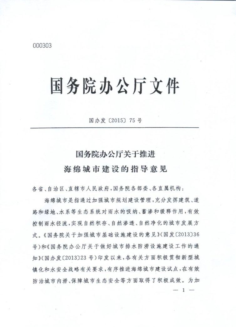 国务院办公厅关于推进海绵城市建设的指导意见(国办发[2015]75号)