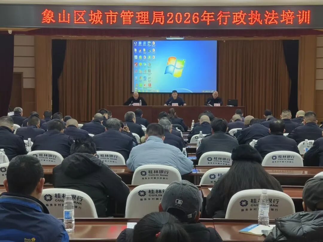 为深入贯彻《广西壮族自治区城市管理综合执法条例》要求,落实桂林市六城区集中行使城市管理行政执法工作的部署,进一步加强执法队伍专业化建设,提升行政执法效能,规范执法行为。1月20日,象山区城市管理局组织开展城市管理行政执法专题培训。区城市管理综合行政执法大队、区环境卫生管理站、二塘乡综合行政执法队及各街道综合行政执法队共101名执法骨干参加。