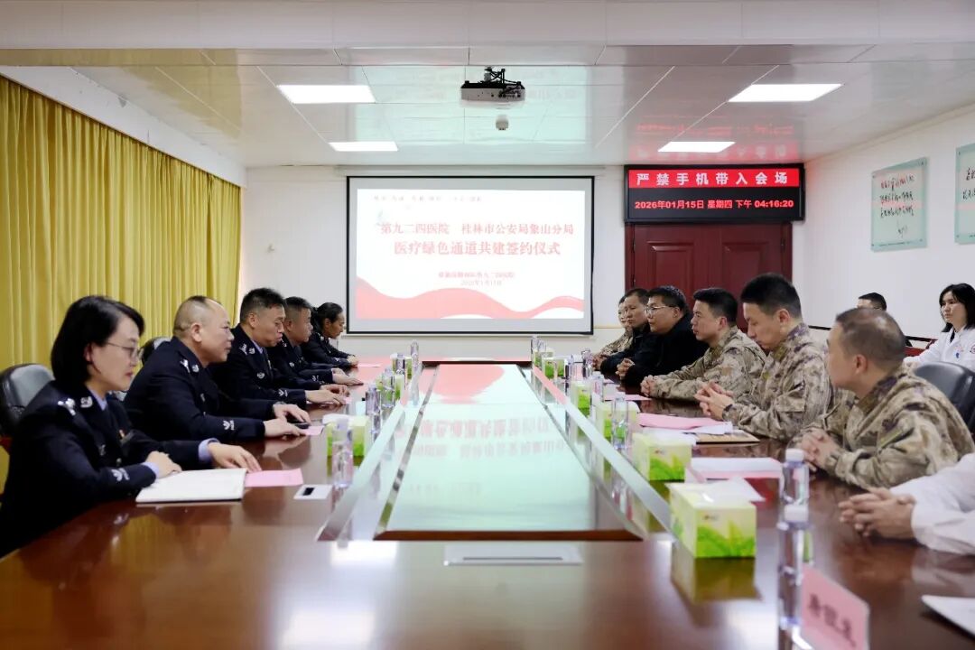 1月15日,桂林市公安局象山分局与第九二四医院举行医疗绿色通道共建签约仪式,以实际行动守护群众安康、传递组织温暖。签约仪式上,双方主要领导共同出席,并签署协议,标志着共建合作正式启动。