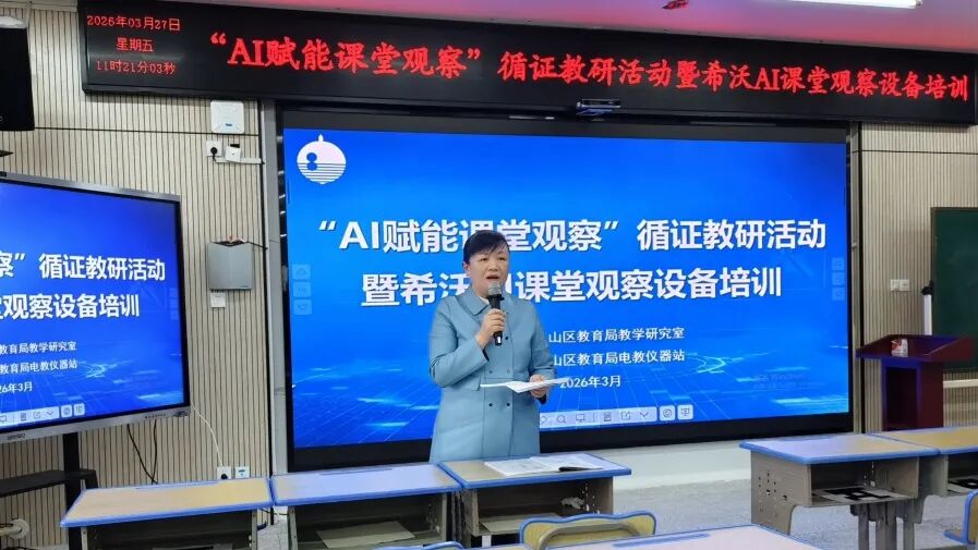 3月27日,象山区“AI赋能课堂观察”循证教研活动暨希沃AI课堂观察设备培训在凯风小学万福分校成功举办。本次活动旨在深入探索人工智能技术与课堂教学评价的深度融合,推动区域教研模式从经验驱动向数据实证转型,助力教师专业成长与课堂教学质量提升。象山区教育党工委委员、教研室主任、教师发展中心主任李敏,区属各校分管副校长,各学科教研员及学科骨干教师等120余人参加活动。