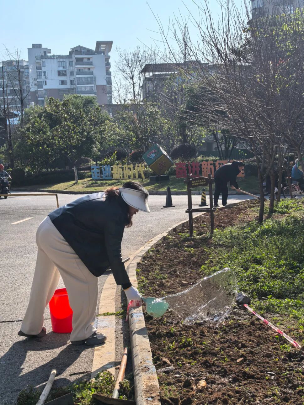 活动现场,志愿者们迅速投入劳动,分工明确、配合默契,形成高效“种花流水线”。有的挥锹松土,为花种创造土壤条件;有的细心除草,不放过任何角落;有的播撒花种,带着对未来的期待;随后均匀覆土、拍实;最后提桶浇水,让水分充分渗透。路过的居民都拍手称赞。
