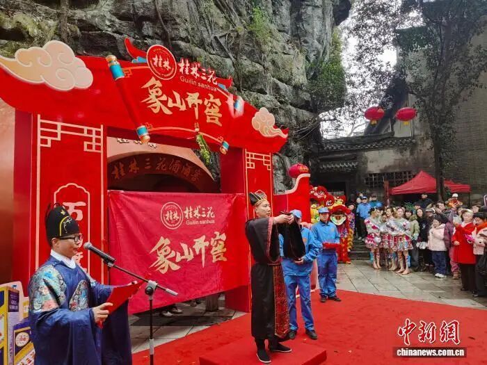 2月8日是中国农历腊月二十一,临近丙午马年春节,广西桂林市城徽象鼻山脚下的千年象山酒窖开窖迎新春。