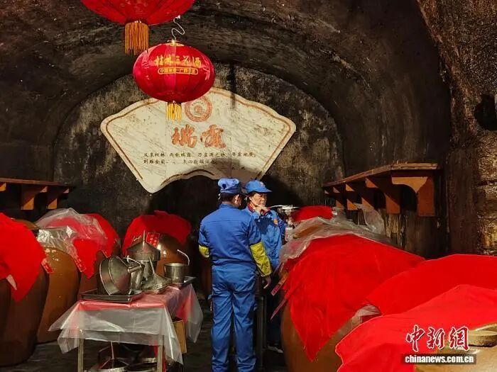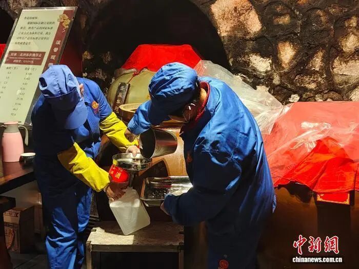 随后,赶上第一波打酒的市民和游客陆续排队走进象山酒窖,讨个好彩头,一进洞口,扑面而来的三花酒香沁人心脾。